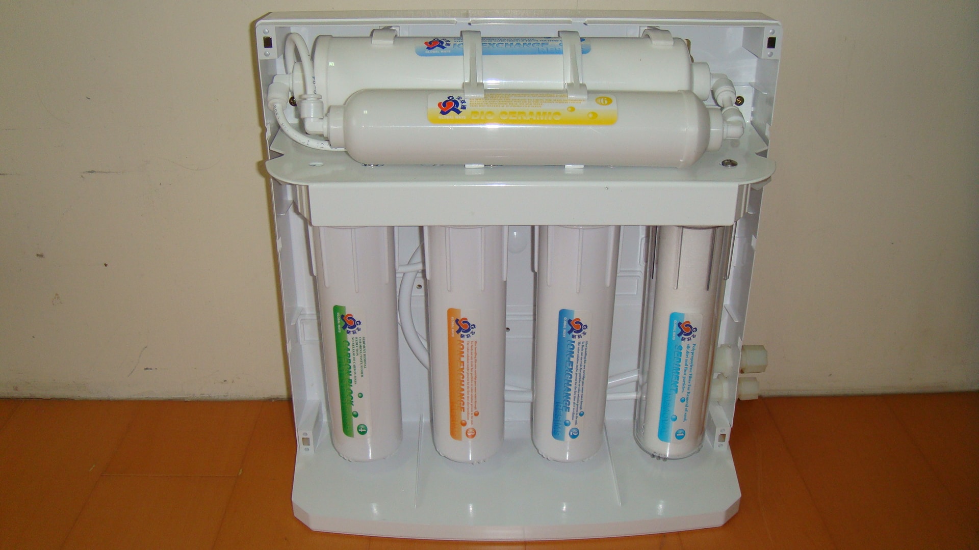 6. 第6道濾芯: 為黃色有全球通字樣標籤貼紙, 且有標示 6
